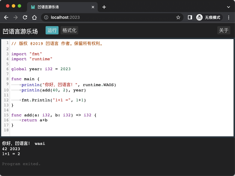 除了访问在线的凹语言 Playground,也可以在本地安装凹语言。