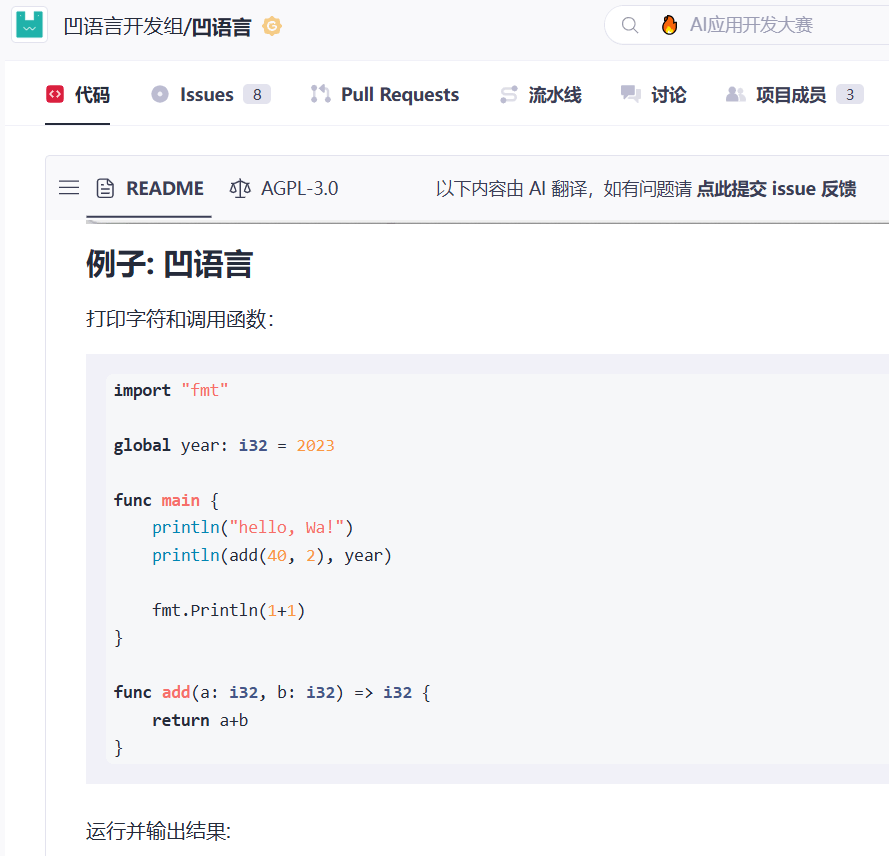 GitCode 是一个基于 Git 的代码托管与协作平台,专注于为开发者提供稳定、高效的代码管理服务,同时注重开源社区的建设与发展。GitCode 也是凹语言主仓库的托管平台,最近 GitCode 平台增加了凹语言的高亮支持。