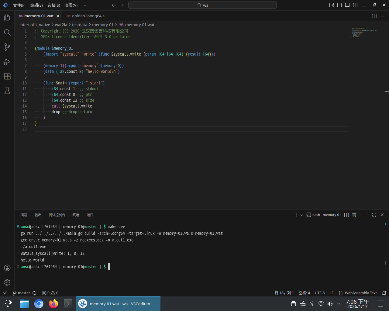 凹语言WASM编译器国产龙芯CPU首例跑通