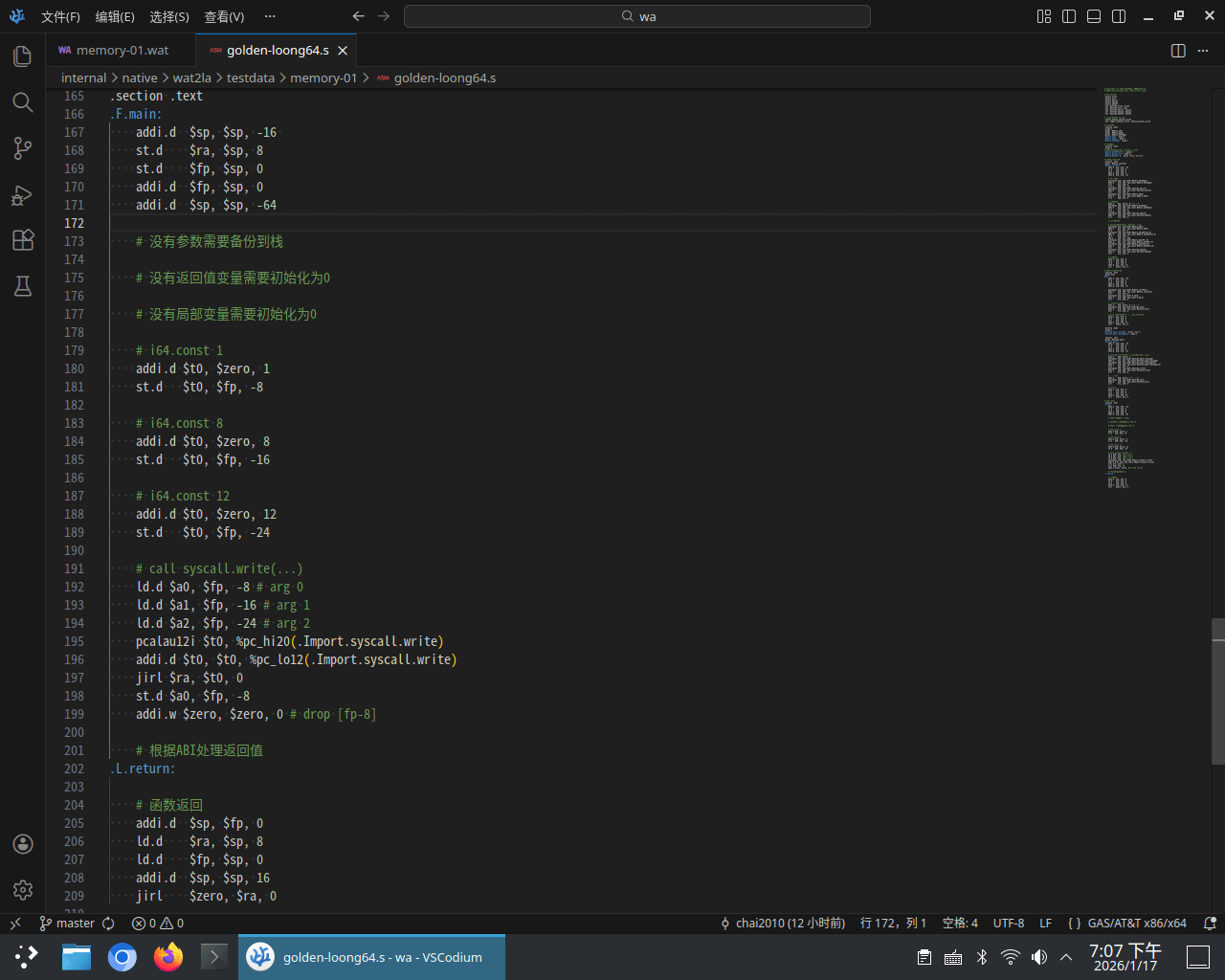 凹语言WASM编译器会生成类似以下的本地汇编代码: